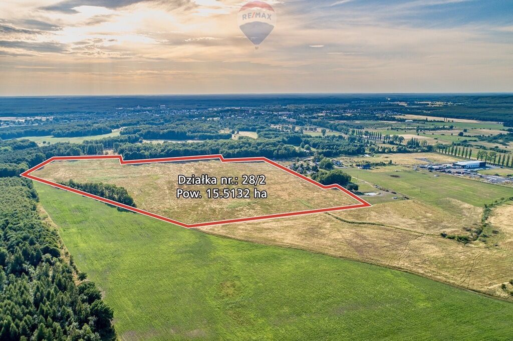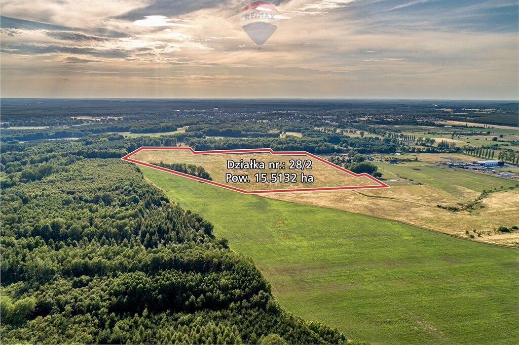 Działka rolna ma powierzchnię 155.132 m², nr 28/2, obr. 0009 i